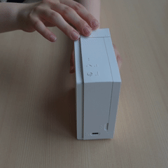 As this prototype does not yet include automatic paper detection and control, please continue pressing the button until the paper emerges from the exit.